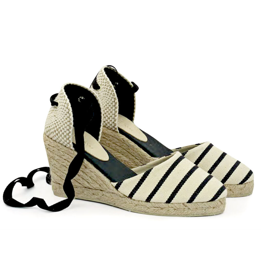 Wedge espadrille in 100% recycled cotton canvas lined in leather.