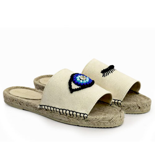 Cross-over sandal in 100% recycled cotton canvas lined in leather.